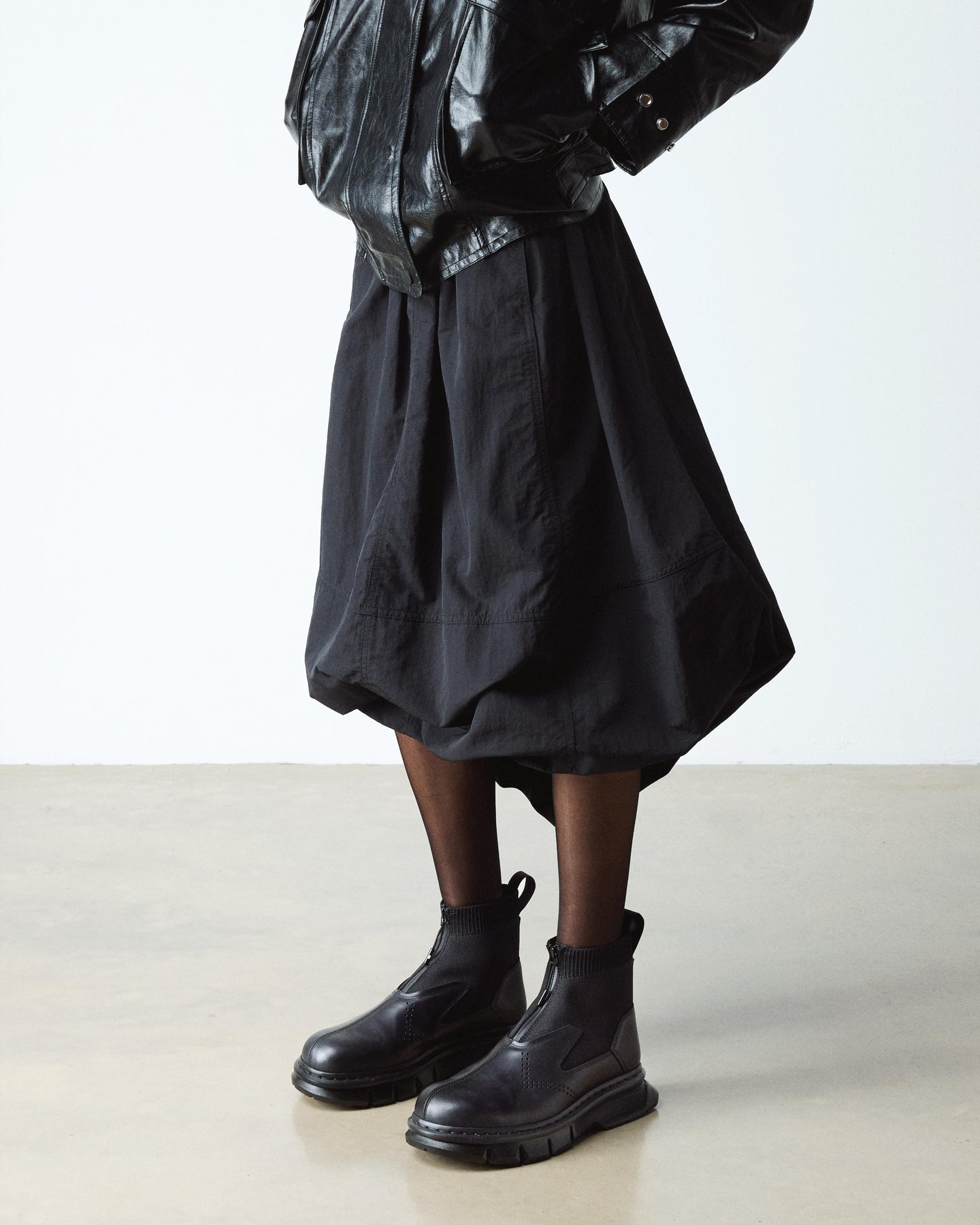 Crafted from easy-wearing, smooth Orleans leather, with a synthetic knitted sock bisected with a subtle front zip. The all-black upper is secured to the flexile outsole with a black-on-black welt stitch and fitted with a wide-footbed SoftWair insole for a more natural fit. And each pair is signed with an AirWair monochrome heel loop.