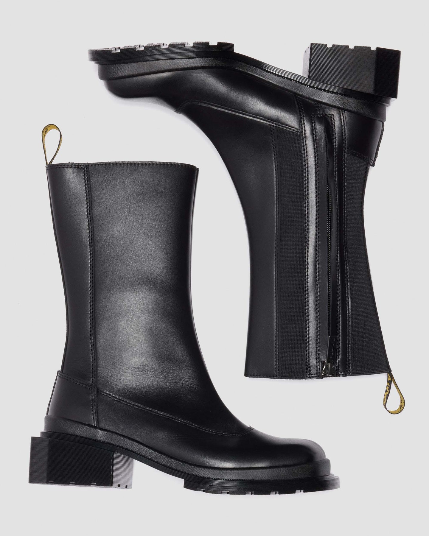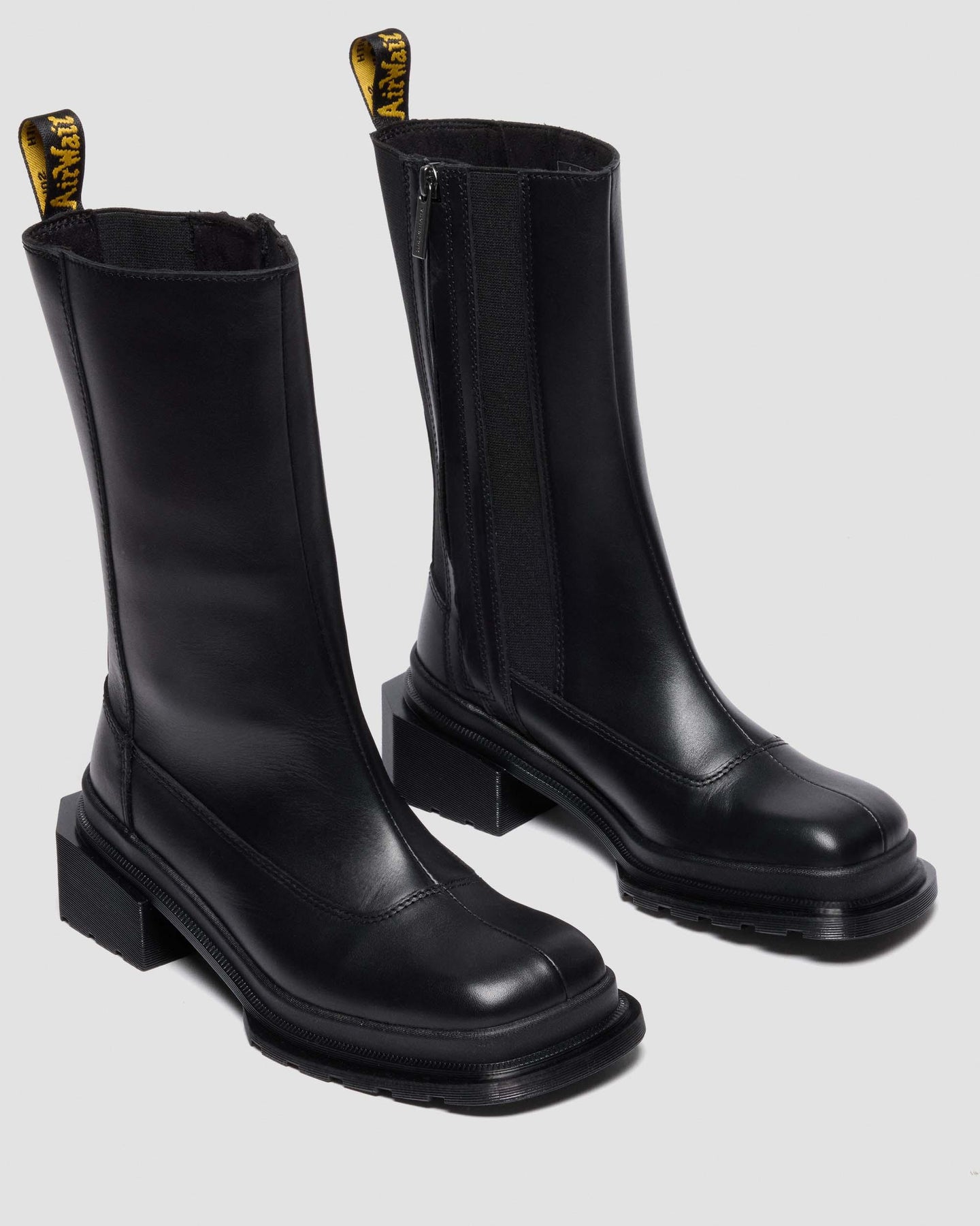 A refined edge. Our square-toe Maybole Chelsea boot in an extra tall silhouette. Crafted from lightweight Wanama leather. Fitted with inner zip for ease of wear. Each pair is set on a heeled angular outsole. Finished with our AirWair heel loop.