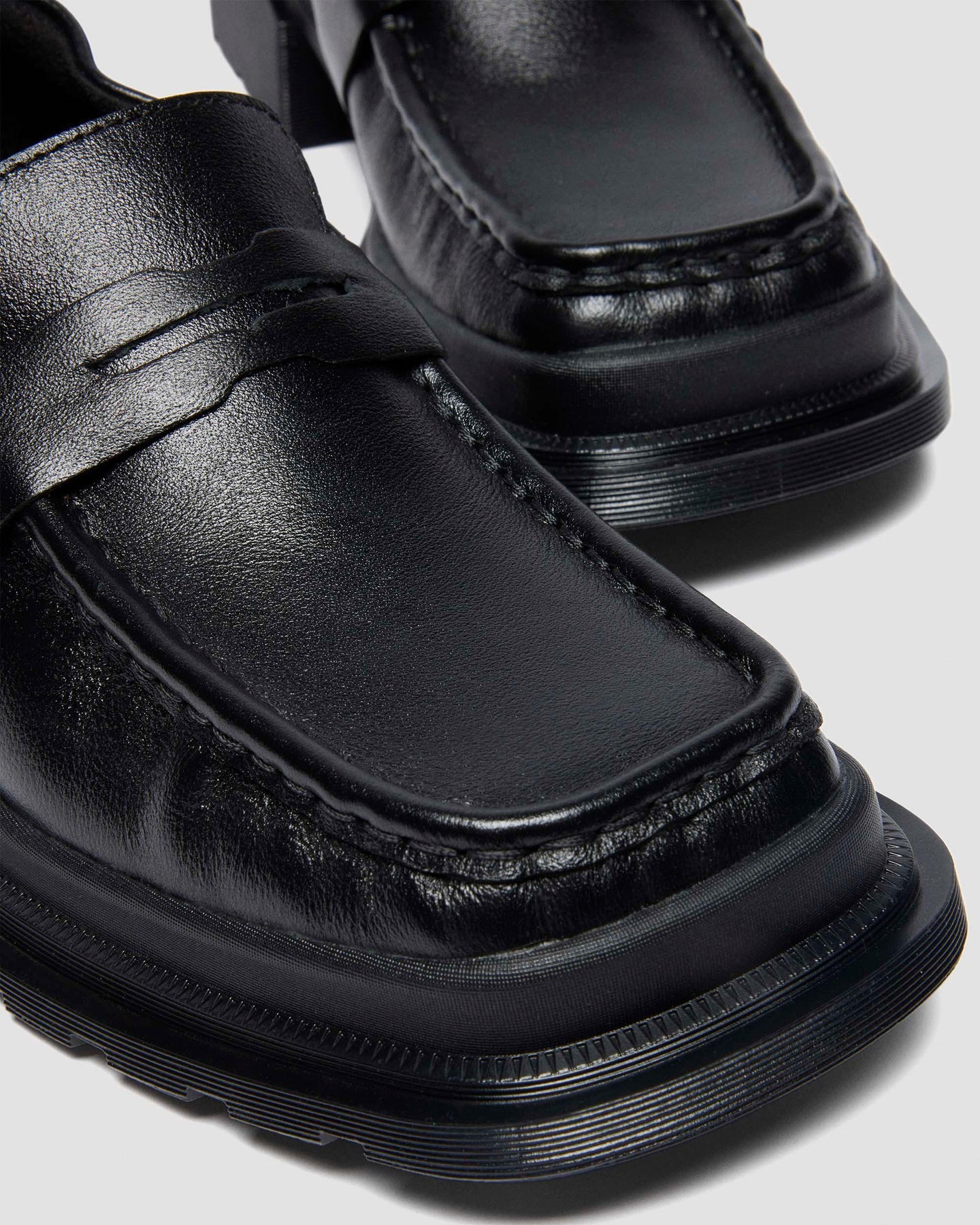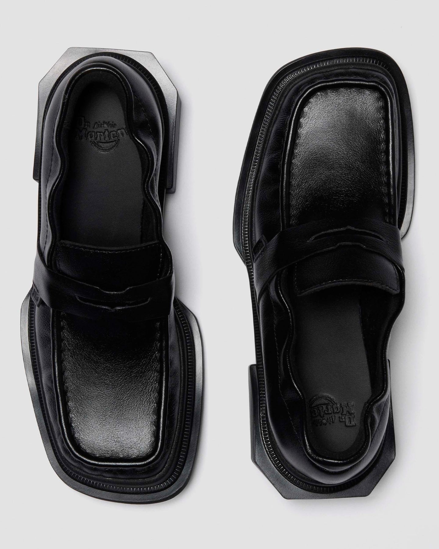 A refined edge. The square-toe Maybole redefined as a ruched, slip-on loafer. Crafted from subtle sheen, Milled Gloss leather. Each pair is set on a heeled angular, all black outsole with signature grooving.